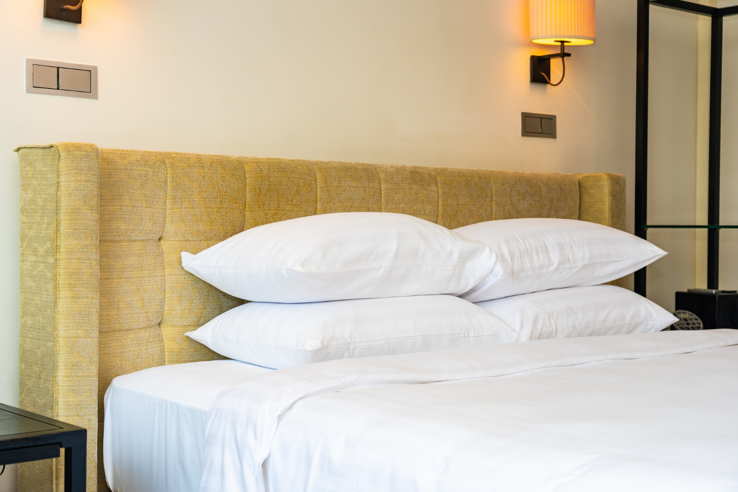 Wbudowane schowki to rozwiązanie, które docenią osoby z mniejszą przestrzenią w sypialni. Dzięki nim zyskamy dodatkowe miejsce na przechowywanie pościeli czy innych przedmiotów, co pozwoli zachować porządek.